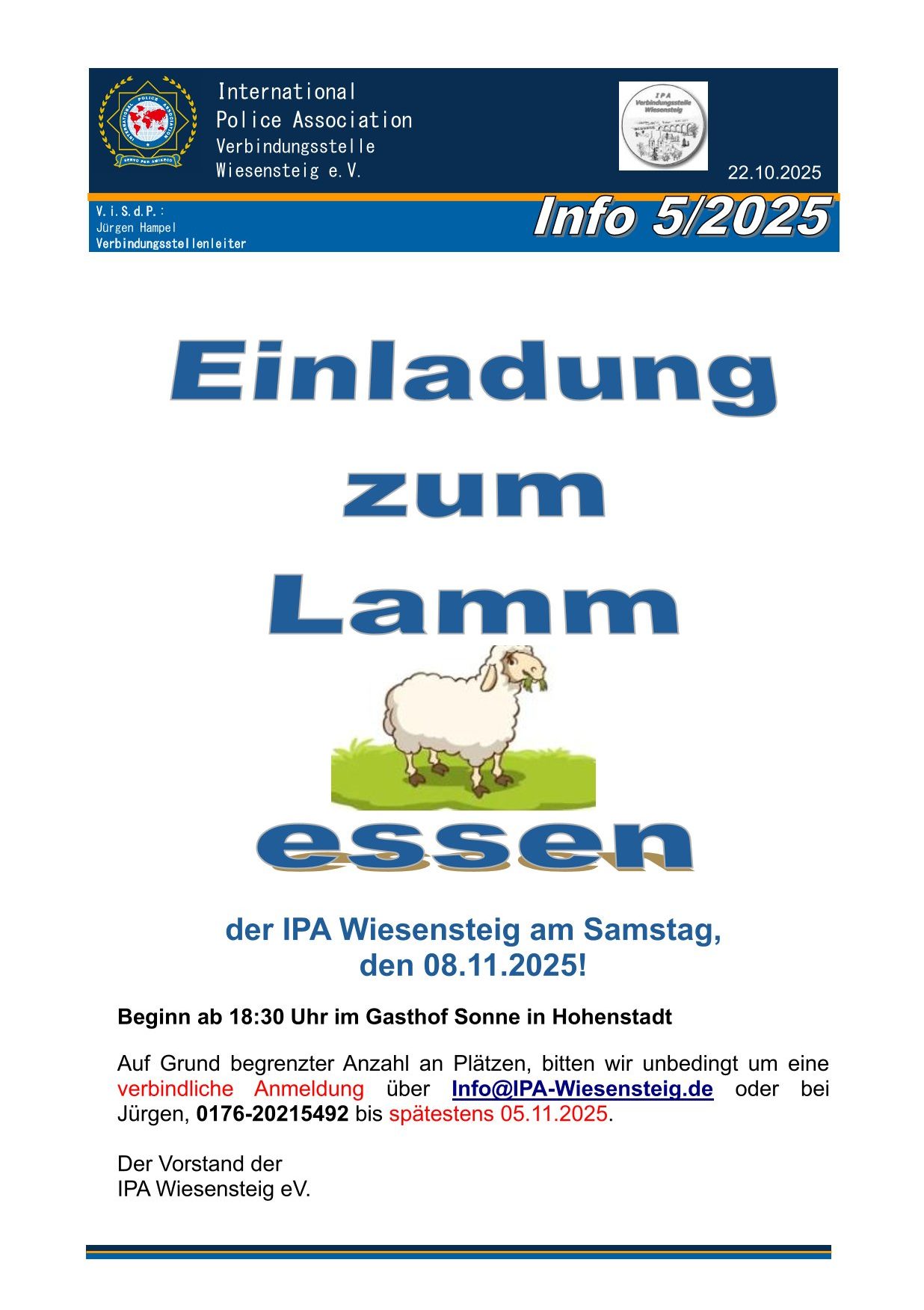 Am 11.04.2025 fand die Mitglieder-versammlung der IPA Wiesensteig statt. Neben den Berichten des Vorstandes gab es einige Ehrungen.